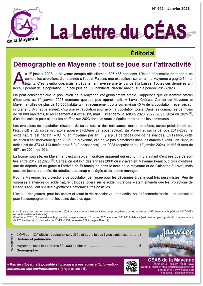 - Démographie : Mayenne, sous la barre des 304 000 habitants