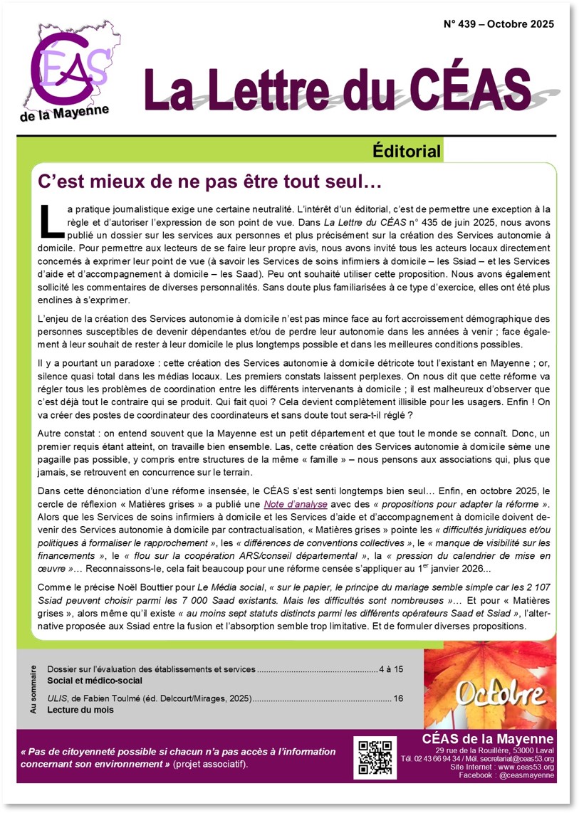 La Lettre du CÉAS n° 439 d'octobre 2025 va arriver dans les boîtes aux lettres électroniques et/ou postales de tou